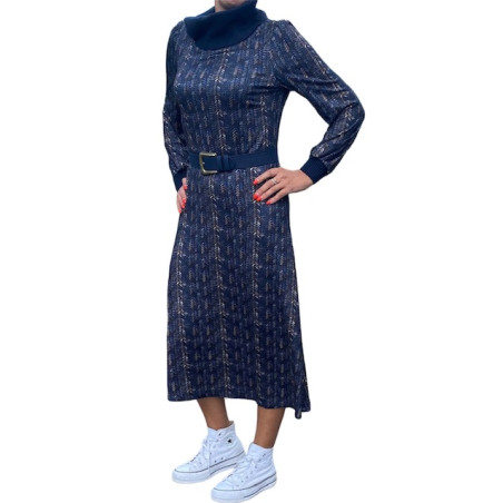 Robe avec print, col roulé et ceinture K design
