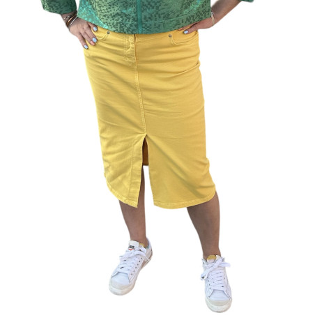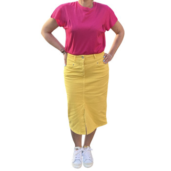 Cette jupe midi jaune CKS annonce la saison estivale en beauté.