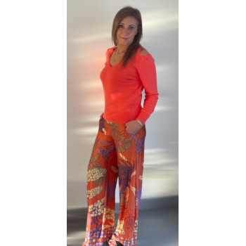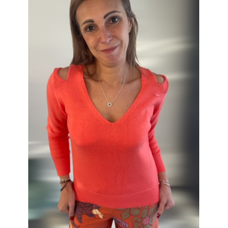 Pull avec épaules dénudées, couleur corail.