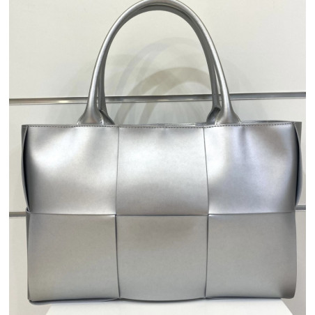 Sac Lucca Grande Mondieux Madame en cuir argenté avec une fine bandoulière de la même couleur.